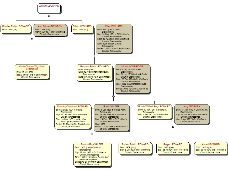 Allan Chapple has kindly sent us his family tree to display. Some of it features old Branscombe families. If you have any comments or would like to contact Allan about his ancestors, please contact us.