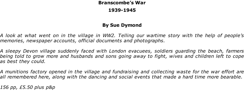 Geoff’s father was the village school master in Branscombe and, during the war, was fully occupied with looking after not only the village school children but fifty bewildered evacuees. Geoff, aged five when the war broke out, and a little later his brother Kingsley, had the freedom to roam the countryside. At first they stayed close to the school house, then, as they grew older, explored further and further afield. Geoff has a remarkable ability to remember not just where they went and what they did, but what it felt like. He also remembers the vague anxiety that hung over the adults, and his own acute anxiety when, clutching a few pennies and farthings, he was sent to fetch bread from Mr Collier at the Old Bakery.