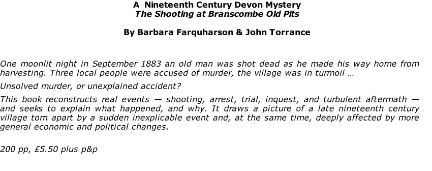 John Torrance, political historian, and Barbara Farquharson, archaeologist and anthropologist, trace the story of John Stuckey, the man who built the house, and his forbears. Stuckey was a determined entrepreneur. He found ways to undermine the old manorial system and took control of large swathes of the parish; he exploited all available geological resources; profiteered from the revolutionary wars abroad, and invested in the new service industries. There was no one to stand up to him except the evangelical parson, Rev. Puddicombe. The ‘losers’ were the working families who, as conditions worsened, finally staged a mini riot.